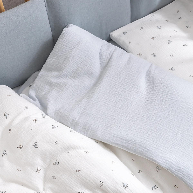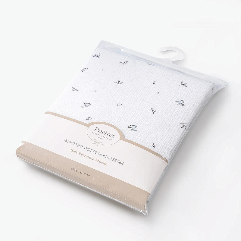 Детское постельное белье Perina Muslin 3 предмета птички / голубая пастель