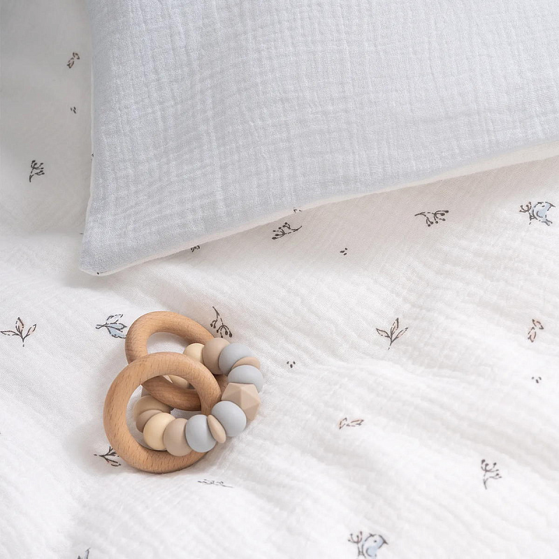 Жатый двухслойный муслин — это натуральная 100% хлопковая ткань, которая деликатно касается кожи малыша, делая сон особенно приятным. Сохраняя яркость цвета, муслин остается как новый даже после многократных стирок.