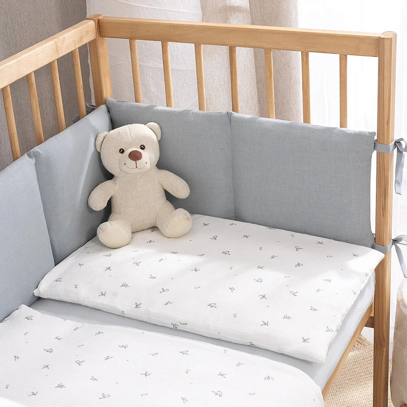 С комплектами Muslin идеально сочетаются бортики в кроватку Soft Cotton в цветах:
