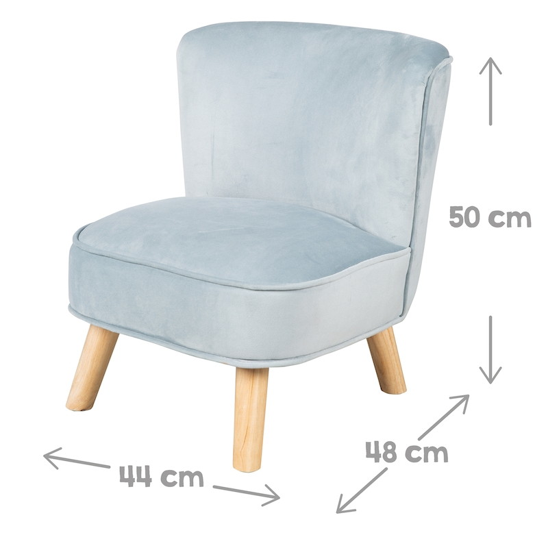 Детское кресло с мягкой обивкой из бархатистой ткани и прочными деревянными ножками впишется в интерьер любой детской комнаты и украсит ее.