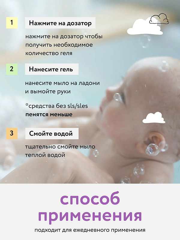 За счет жидкой консистенции средства оно полностью и очень легко смывается, не причиняя дискомфорта малышу.