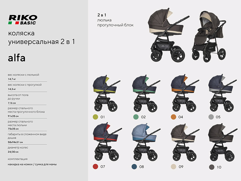 Детская коляска Riko Basic Alfa 2 в 1 02 синий-изумруд