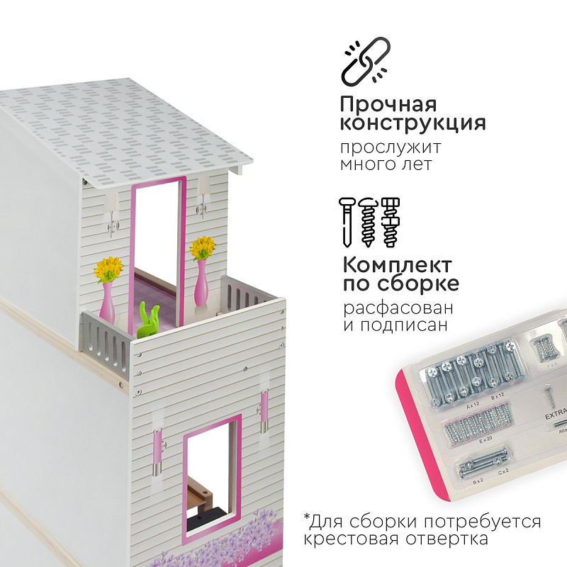 - Собирается с помощью понятной поэтапной инструкции (для сборки понадобится крестовая отвертка)