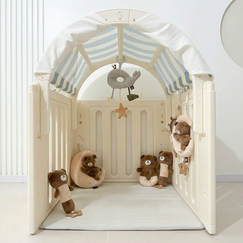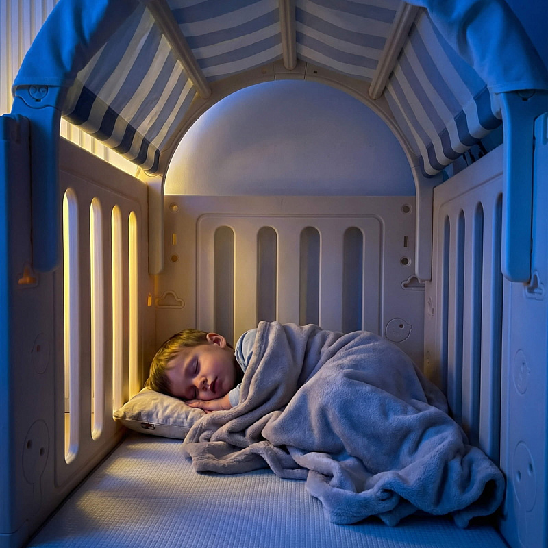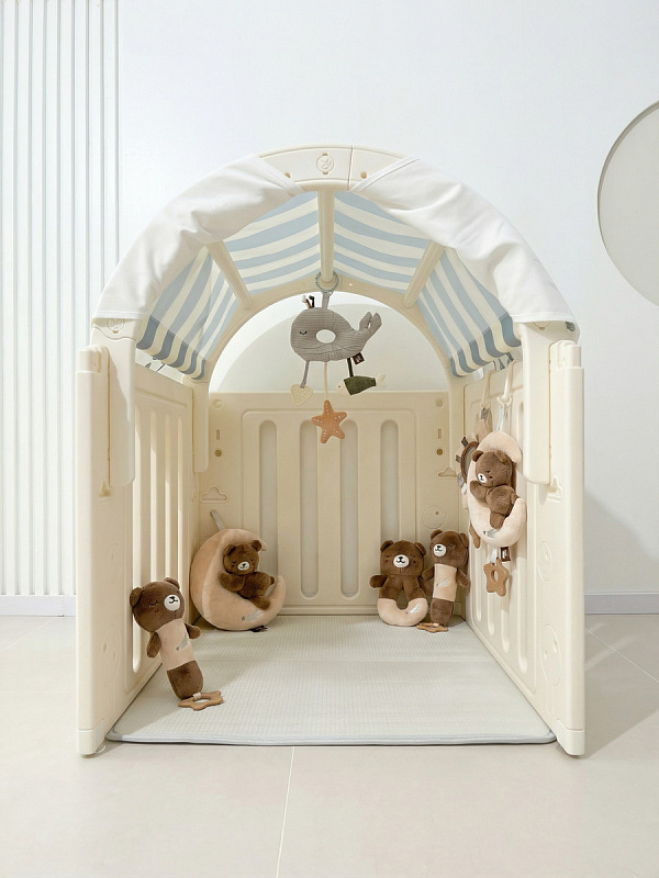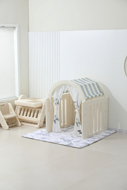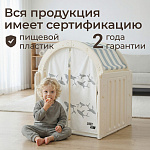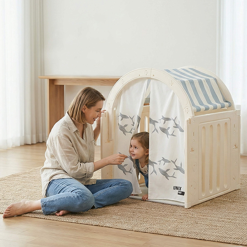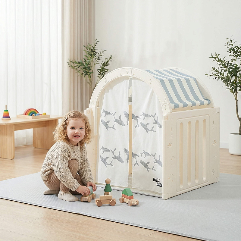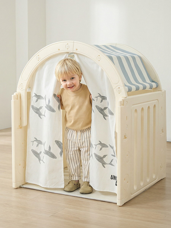 Легкость сборки позволяет быстро подготовить детскую игровую, экономя ваше время. Материал крыши и штор допускает стирку в стиральной машине, а небольшие загрязнения легко удаляются обычной влажной губкой, сохраняя чистоту и гигиеничность пространства.