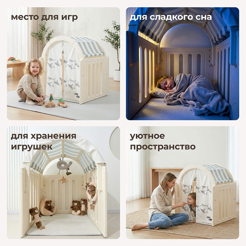 Создайте своему малышу собственный мир приключений и комфорта вместе с палаткой-домом UNIX Kids — идеальным выбором для досуга крохи дома и на улице.