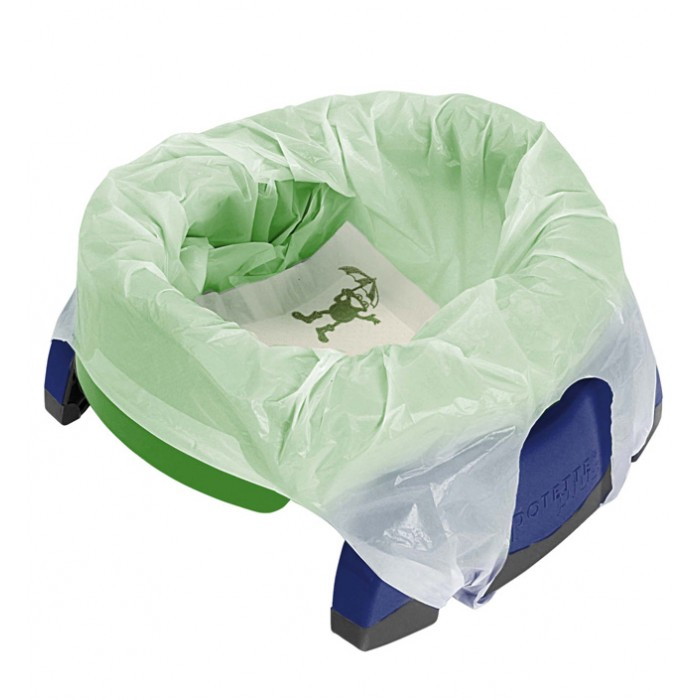 Дорожный горшок Potette plus складной, 10 одноразовых пакета синий-зеленый