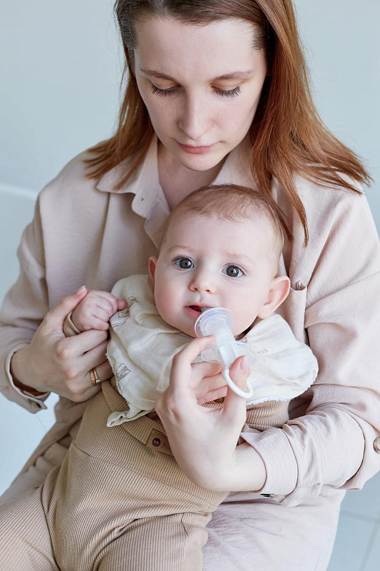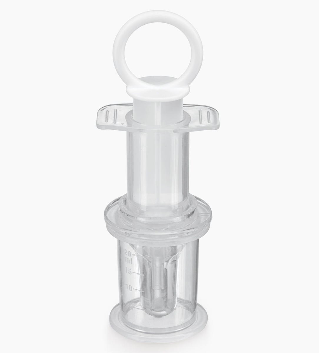 Дозатор поможет быстро и легко отмерить необходимую для малыша порцию. Содержимое дозатора можно аккуратно ввести, пока кроха будет увлеченно жевать силиконовый наконечник. Косые отверстия направляют жидкость в разные стороны, избегая прямого попадания в горло, чтобы малыш случайно не подавился. Мерный стаканчик объемом 20 мл поможет отмерить большее количество жидкости, которое необходимо разделить на несколько порций. Дозатор имеет широкий ограничитель.