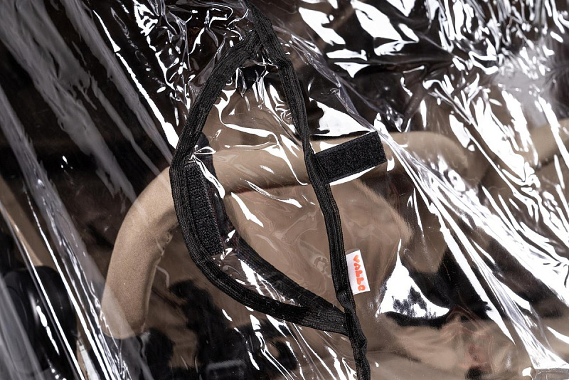 Оснащен двумя окошками на липучках. Надежно фиксируется на корпусе коляски, устойчив к порывам ветра.