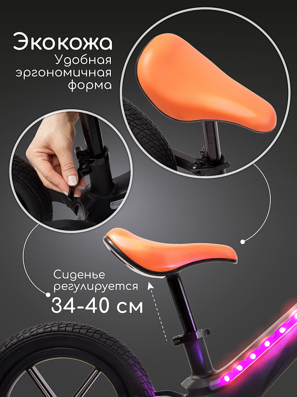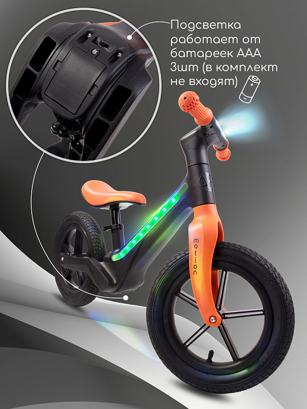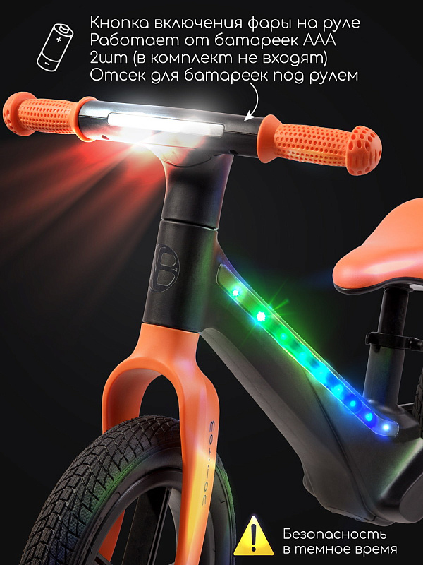 Беговел AmaroBaby Motion – стильный, крутой и невероятно функциональный спутник вашего малыша на пути к большим велосипедным свершениям! Уникальная динамичная подсветка рамы с множеством вариантов превратит каждую прогулку в захватывающее световое шоу.