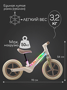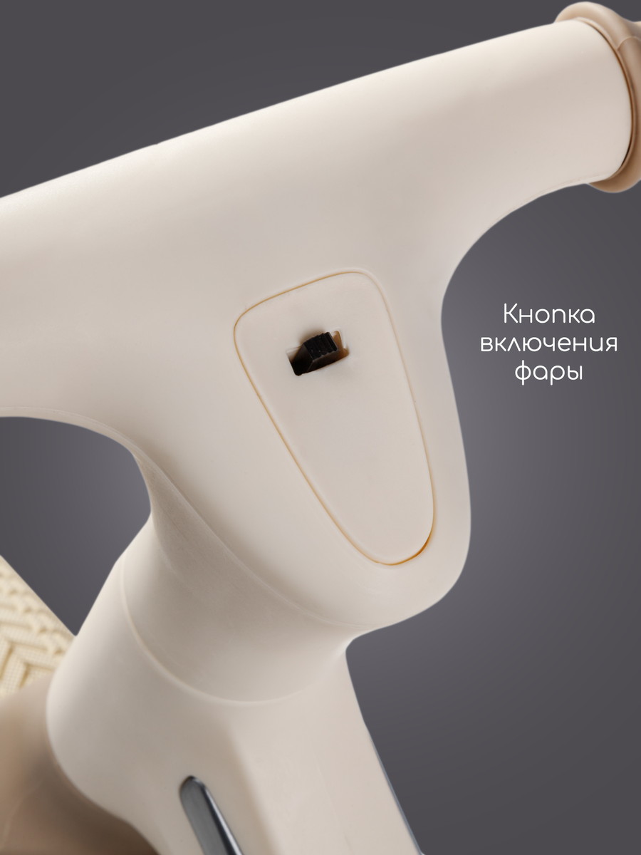 На руле у детского беговела также предусмотрен фонарик. Благодаря надувным колесам велобег обеспечивает плавный ход, а ударопрочная нейлоновая рама гарантирует долговечность и безопасность. Противоскользящие грипсы для надежного хвата. Удобные выемки-подножки для ног для максимального комфорта. Эргономичное седло из эко-кожи, которое всегда останется комфортным. Сиденье регулируется по высоте, подстраиваясь под стремительный рост вашего ребенка. Максимальная нагрузка 50 кг.