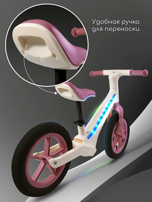 Беговел AmaroBaby Motion – стильный, крутой и невероятно функциональный спутник вашего малыша на пути к большим велосипедным свершениям! Уникальная динамичная подсветка рамы с множеством вариантов превратит каждую прогулку в захватывающее световое шоу.