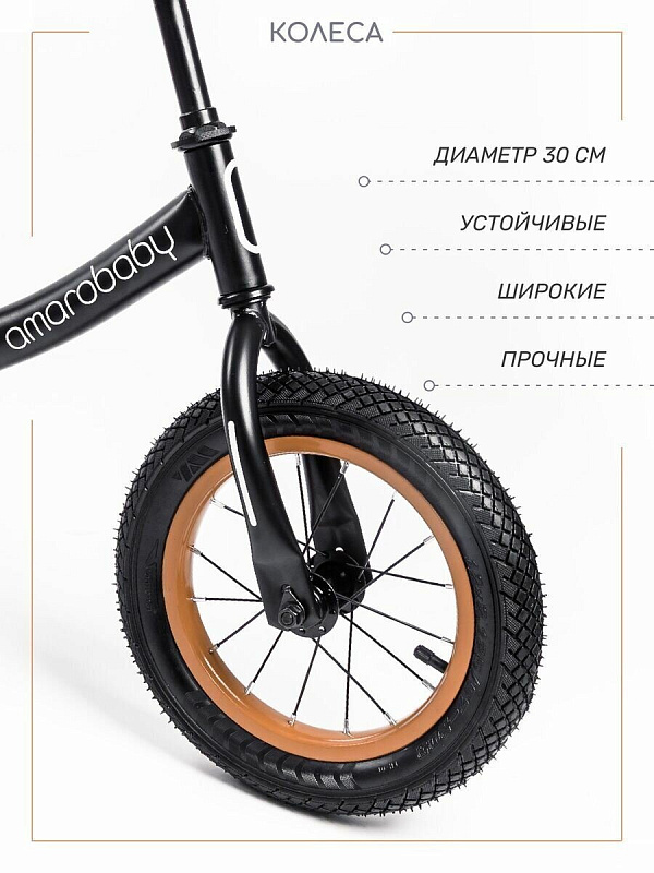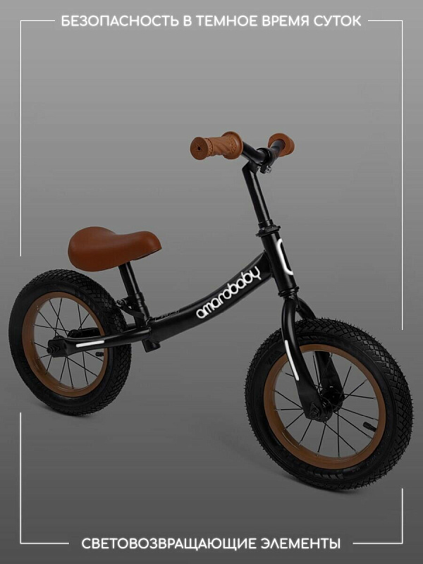 Беговел детский Amarobaby ROAD RACER (может быть известен Вам как: шаговел, велобег, ранбайк, велокат) для малышей старше 3 лет поддерживает всестороннее развитие вашего ребенка, обеспечивая ему долгие часы веселья на свежем воздухе, станет любимым развлечением для ребенка, с пользой для его здоровья и развития. Беговел - это детский велосипед без педалей, который научит ребенка держать равновесие и укрепит ножки и ручки, что в дальнейшем поможет освоить двухколесный велосипед без опорных колес, подойдёт как для девочек, так и для мальчиков. Простая и надёжная конструкция изделия гарантирует комфорт и безопасность ребёнка во время езды. Наш лёгкий беговел имеет раму из стали с максимальной нагрузкой до 30 кг. Надувные колеса размером 12" обеспечат комфортную поездку и хорошую проходимость. Эргономичное сидение позволит ребенку сидеть комфортно продолжительное время.