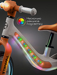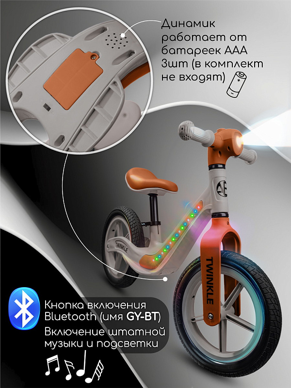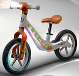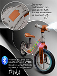 Особенностью модели является наличие подсветки на раме, музыки. Можно включить как штатную мелодию, так и подключить свою через bluetooth. На руле предусмотрен фонарик. Современный дизайн с яркой подсветкой рамы позволит ребенку выделятся среди сверстников и оставаться заметным даже в темное время суток.