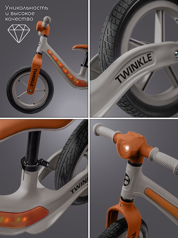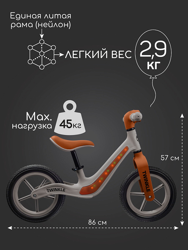 Двухколесный беговел AmaroBaby Twinkle серый/коричневый