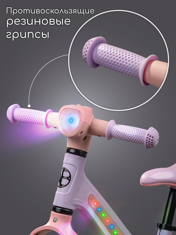 Особенностью модели является наличие подсветки на раме, музыки. Можно включить как штатную мелодию, так и подключить свою через bluetooth. На руле предусмотрен фонарик. Современный дизайн с яркой подсветкой рамы позволит ребенку выделятся среди сверстников и оставаться заметным даже в темное время суток.