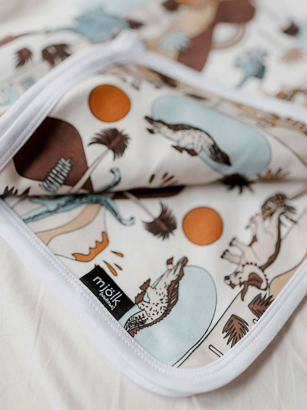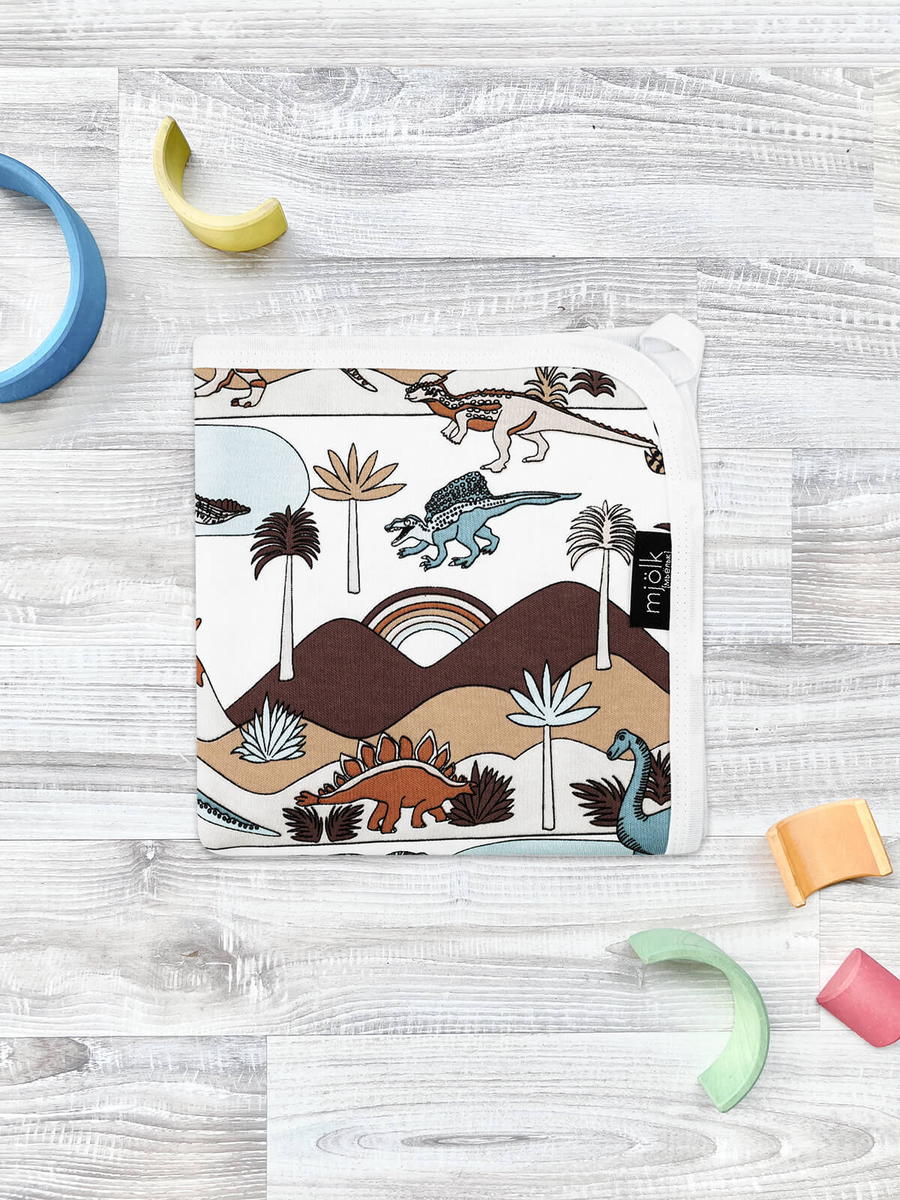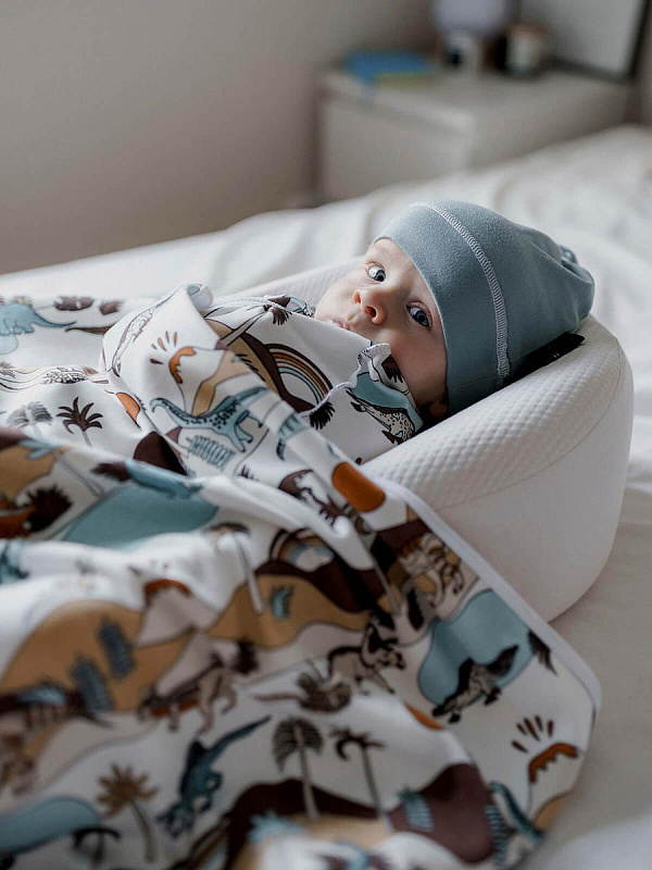 Двусторонний плед Mj?lk [мьёльк] Dinoworld выполнен из двух слоёв трикотажного 100% хлопка без наполнителя. На одной стороне расположились разноцветные динозавры, с другой стороны серые звезды на белом фоне. Материал нежный и мягкий, пропускает воздух и удерживает тепло, не вызывает аллергии и дарит ребёнку уют. Плед можно использовать для сна в кроватке, коляске и автокресле, как накидку для кормления. Яркий принт делает его отличным фоном для фотосессий в домашних условиях или на улице.