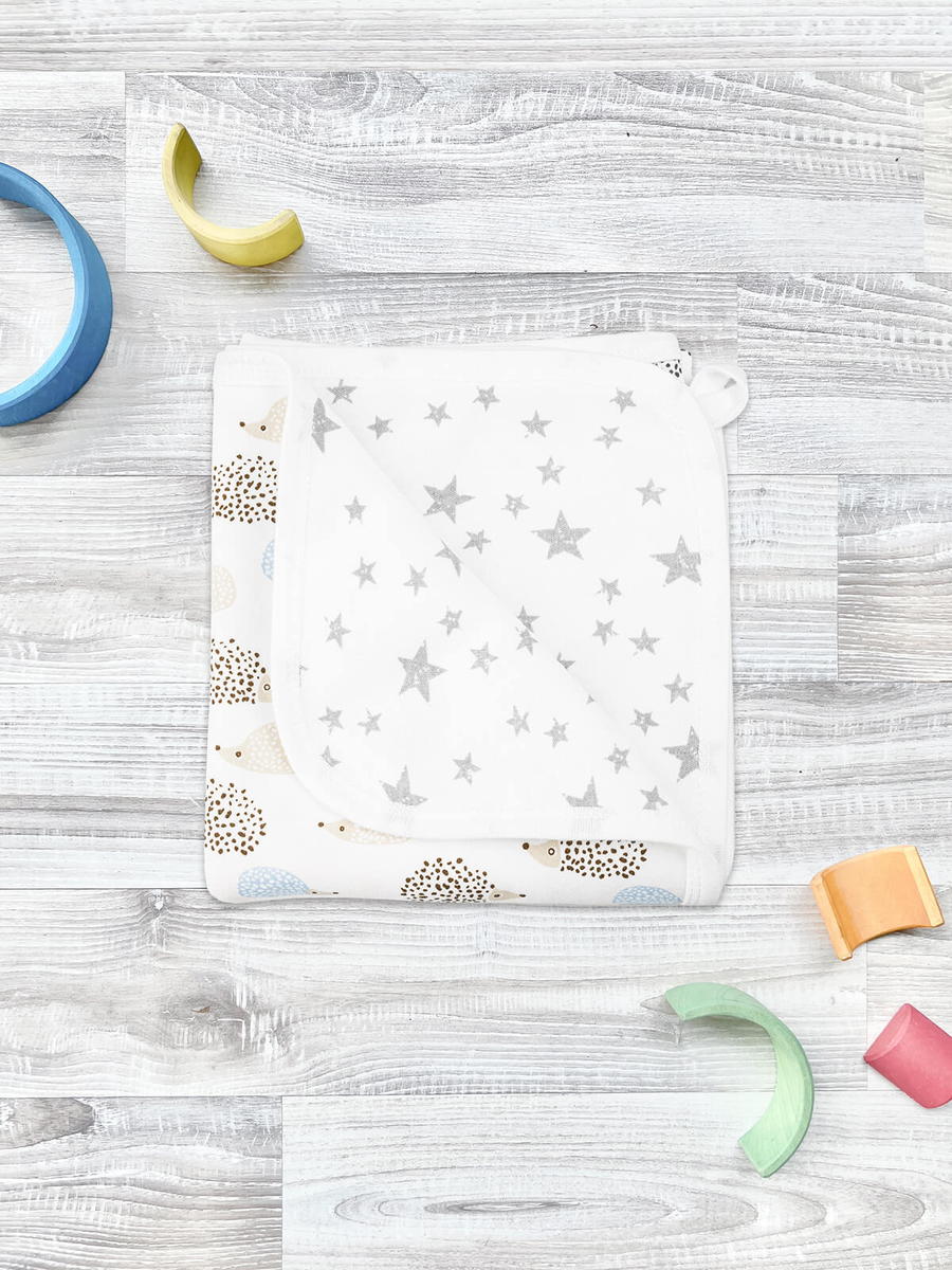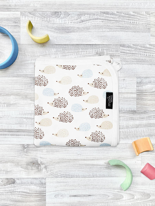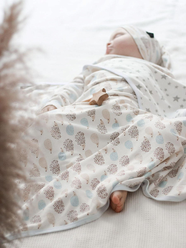 Двусторонний плед Mjölk [мьёльк] Ёжики выполнен из двух слоёв трикотажного 100% хлопка без наполнителя. На одной стороне расположились разноцветные ёжики, с другой стороны серые звезды на молочном фоне. Материал нежный и мягкий, пропускает воздух и удерживает тепло, не вызывает аллергии и дарит ребёнку уют. Плед можно использовать для сна в кроватке, коляске и автокресле, как накидку для кормления. Яркий принт делает его отличным фоном для фотосессий в домашних условиях или на улице.