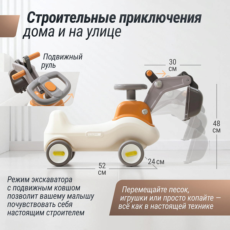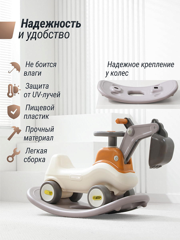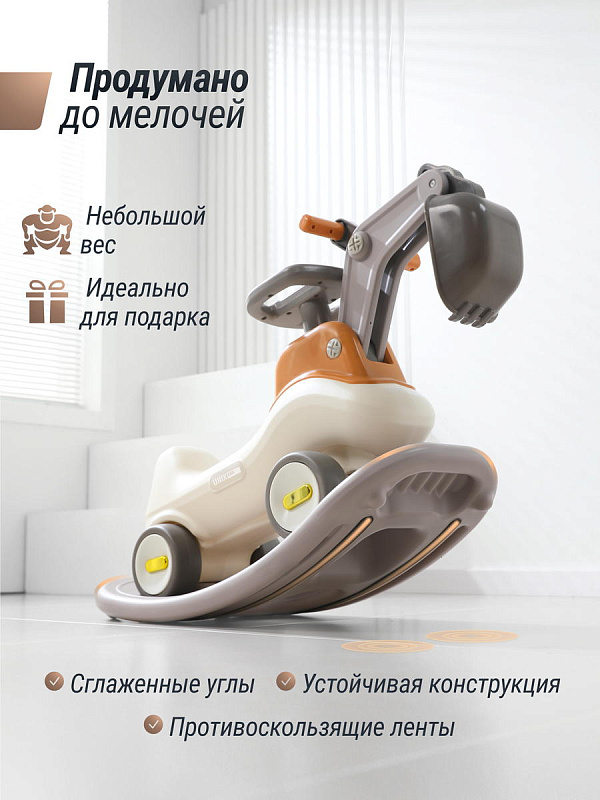 Уникальная игрушка качалка, беговел и балансборд экскаватор 3 в 1 UNIX Kids Brown — идеальное решение для активных и любознательных детей! Многофункциональная игрушка станет не только источником радости, но и важным помощником в развитии малыша!