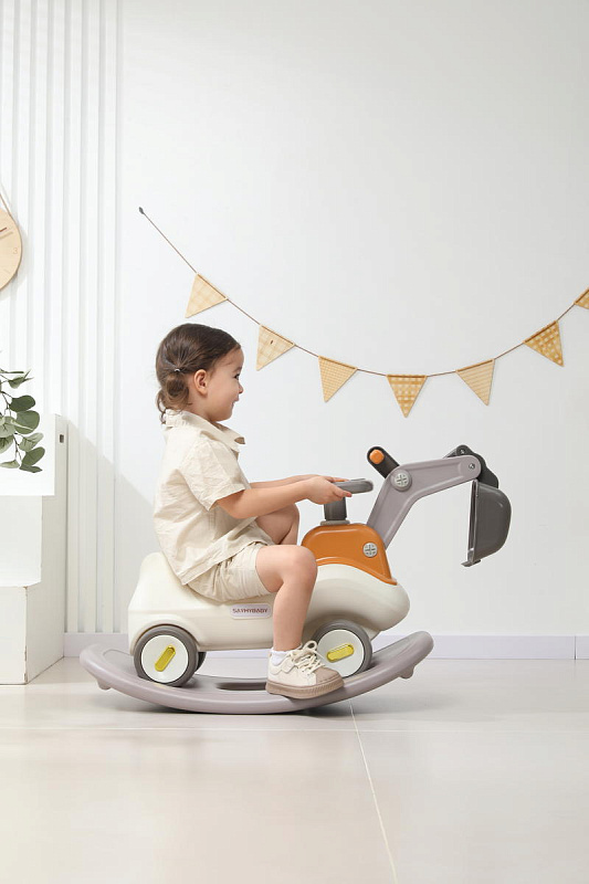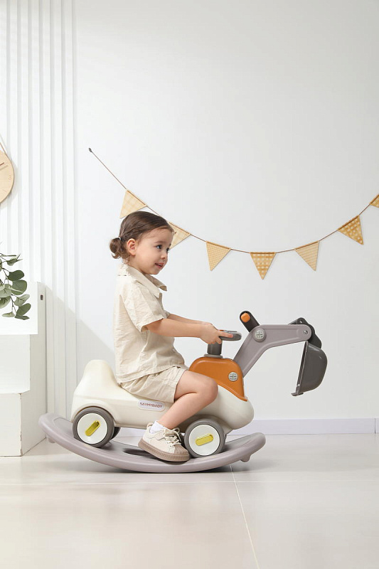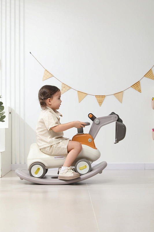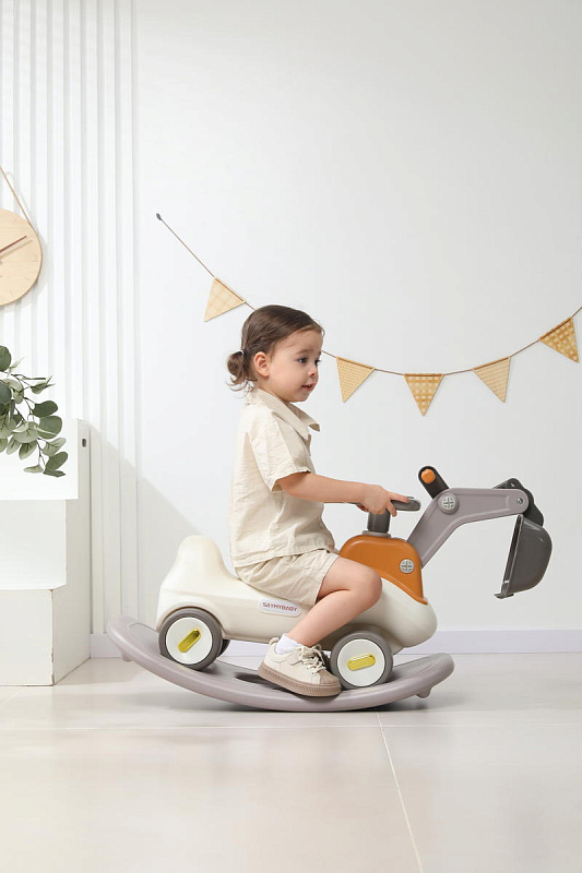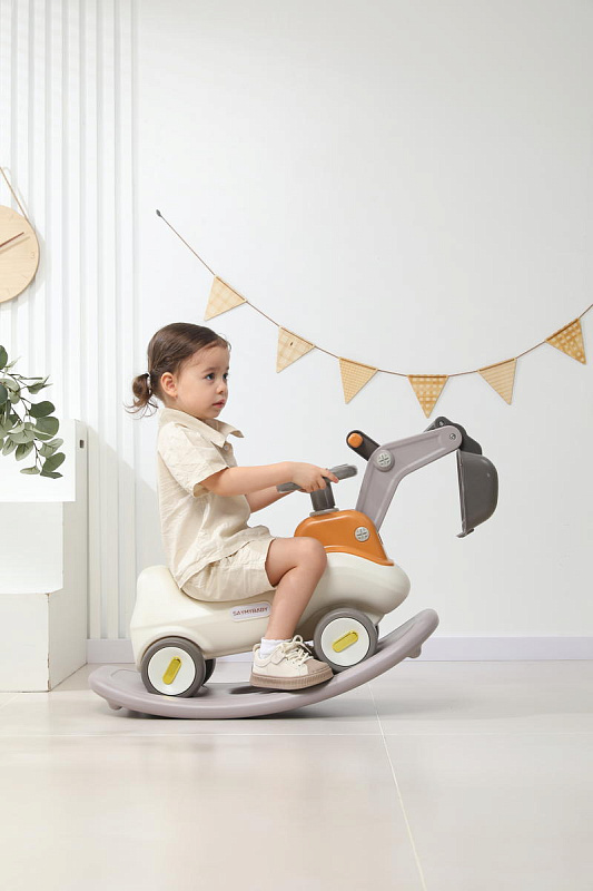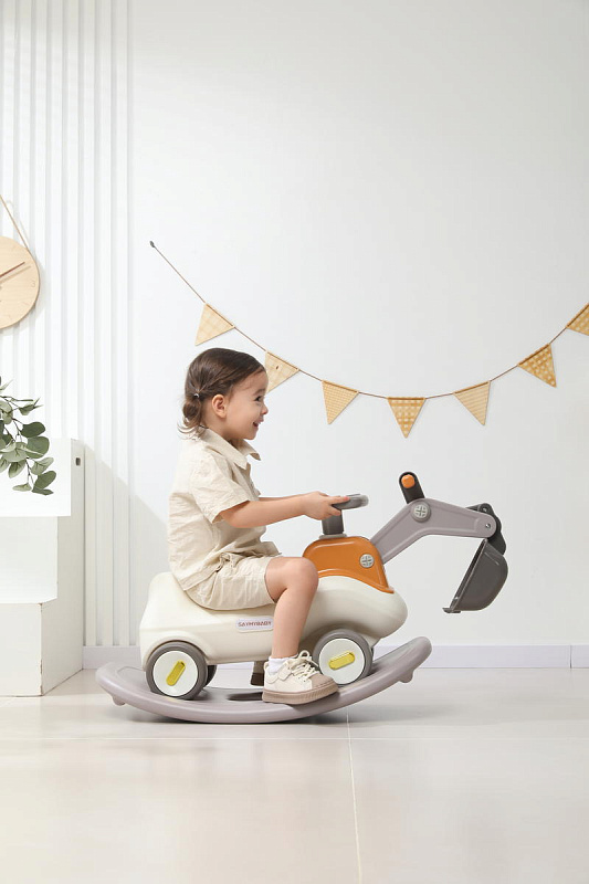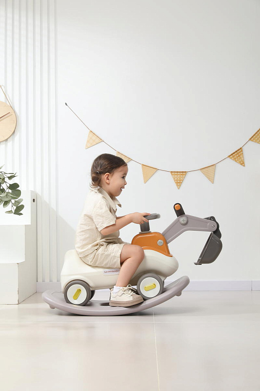 Качалка в форме экскаватора с ковшом обязательно привлечет внимание ребенка. Она станет настоящим украшением детской комнаты и вдохновит малыша на новые приключения.