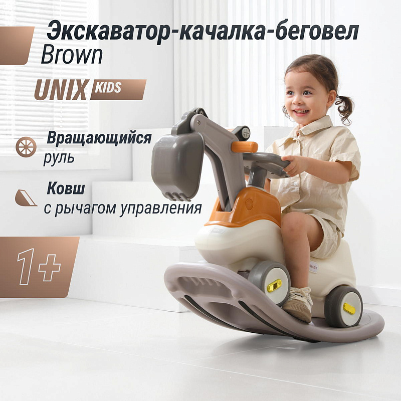 Экскаватор-качалка-беговел UNIX Kids Brown