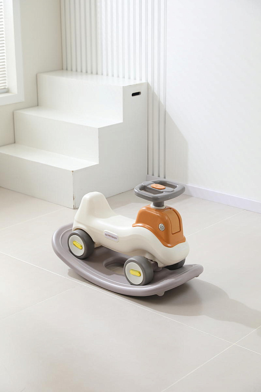 Игрушка сочетает в себе функции классической лошадки - качалки, беговела и балансборда, что позволяет ребенку наслаждаться игрой на разных этапах его развития. Вначале малыш сможет кататься на ней, раскачиваясь взад-вперед, затем легко преобразовать её в беговел от 1 года, который поможет развивать навыки ходьбы, а после использовать как балансборд для развития координации.