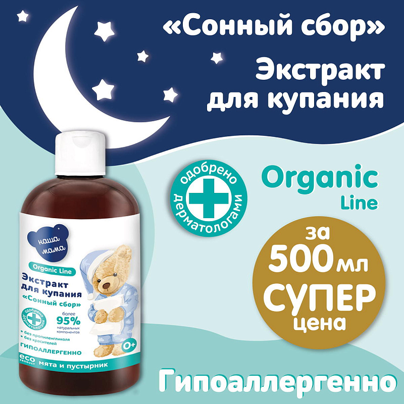 Экстракт трав Наша мама Organic Line для купания младенцев Сонный сбор (мята, пустырник), 500 млНет оценокХарактеристики
