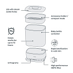 Идеально подходит для обеспечения глубокой очистки детских бутылочек, сосок-пустышек, колец для прорезывания зубов и других аксессуаров, а также стерилизуемых компонентов молокоотсоса, емкостей для грудного молока и т.д.