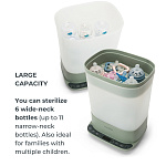- Стерилизует одновременно до 6 бутылок с широким горлышком или 11 бутылок с узким горлышком.