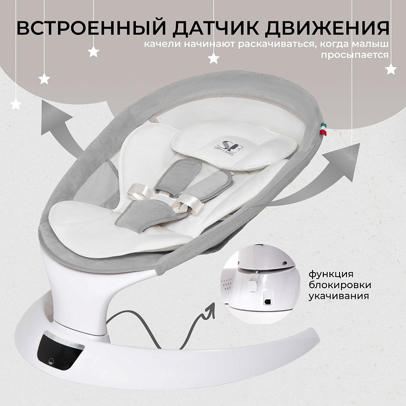 Электрокачели Sweet Baby Matteo Lux – это идеальный выбор для новорожденных и их родителей. Эти качели обеспечивают максимальный комфорт и безопасность для вашего малыша, сочетая множество удобных и полезных функций, которые облегчат жизнь родителям. Вы можете управлять ими как с помощью сенсорной панели, так и с пульта ДУ.