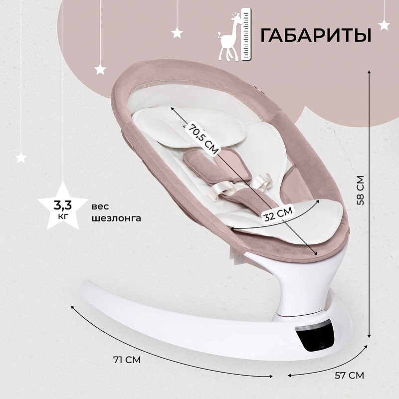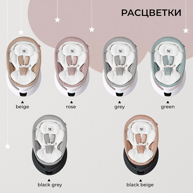 - 5 скоростей укачивания. Пятискоростной режим укачивания подстроится под личные особенности каждого младенца
