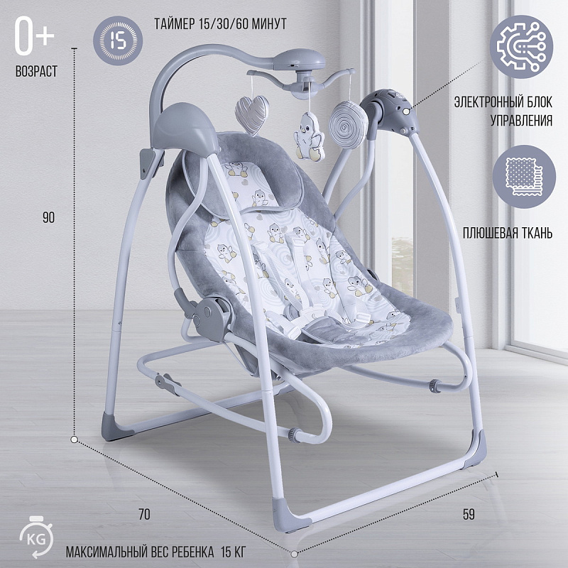 Электрокачели Sweet Baby Pure Pinguino 2 в 1 grigioНет оценокХарактеристики