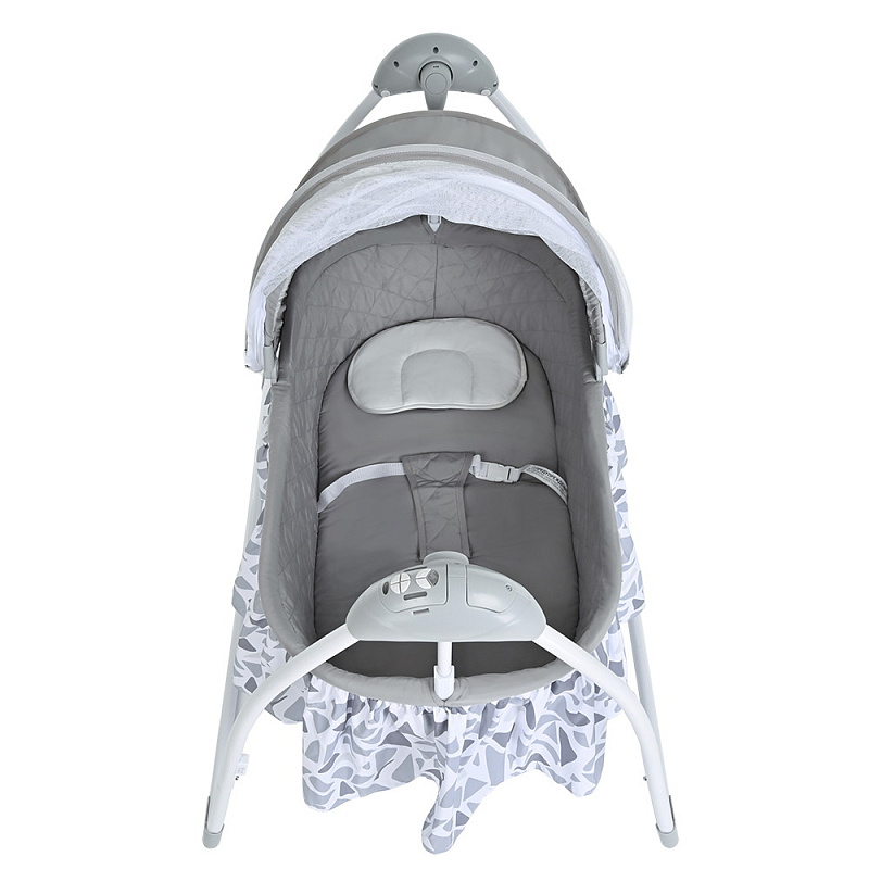 Электрокачели-колыбель с глубокой и мягкой люлькой для максимального комфорта малыша. 2-х точечные ремни обеспечат безопасность. Тихий и плавный механизм укачивания.