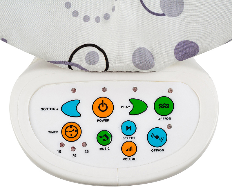 - Качель удобна в управлении. Оснащена таймером. Может работать, как от сети, так и от батареек.