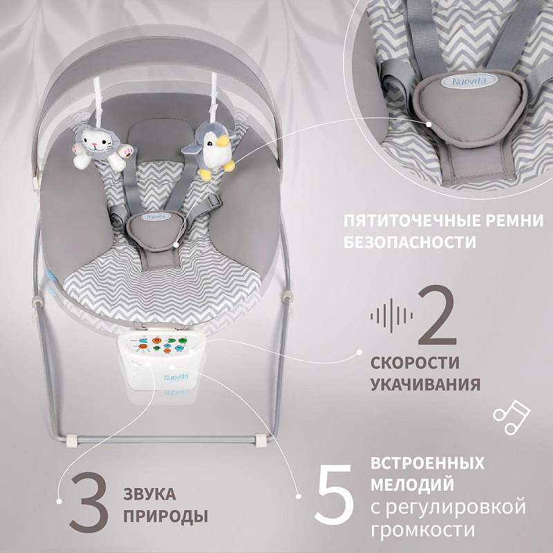 Купить электрокачель Nuovita Cullare, отзывы о которой, говорят о том, что изделие отмечается отменным качеством и привлекательным внешним видом. Дуга с игрушками, приятные мелодии и звуки природы, две скорости качания - все это позволит ребенку интересно проводить время и познавать окружающий мир.