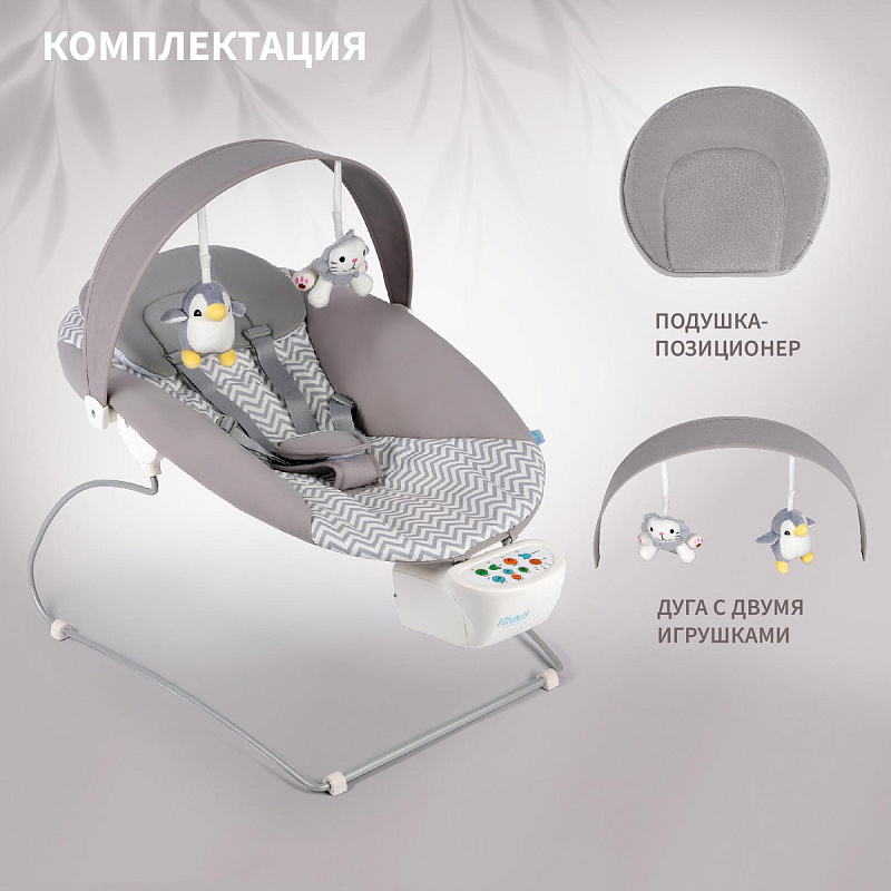 - Качель удобна в управлении. Оснащена таймером. Может работать, как от сети, так и от батареек.