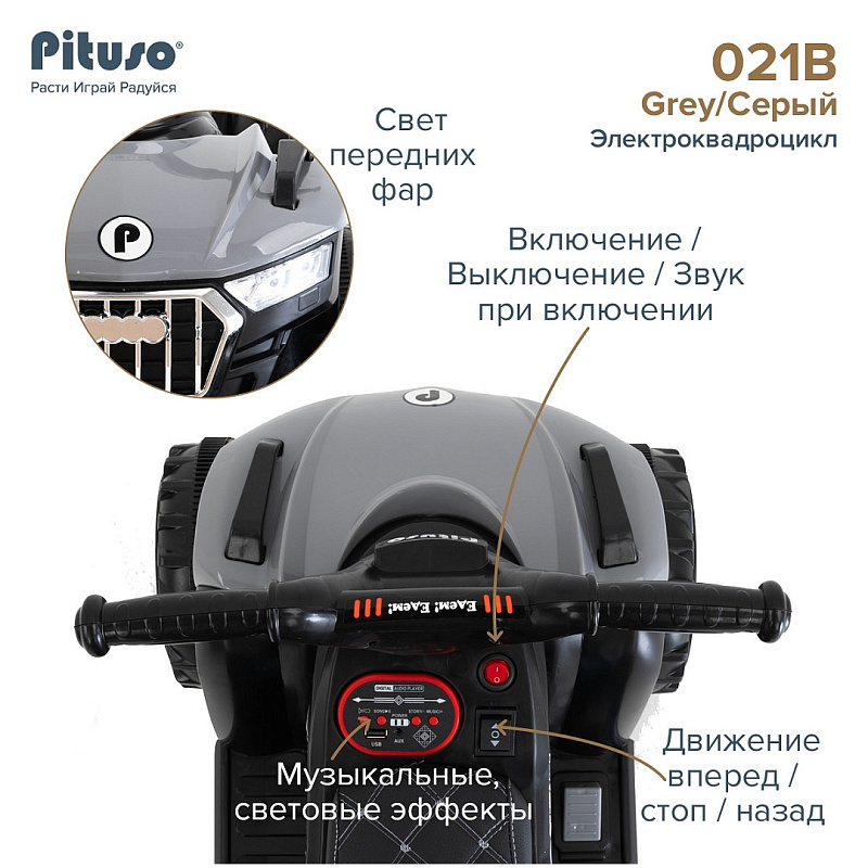 Электроквадроцикл Pituso 2300021B Grey/Серый