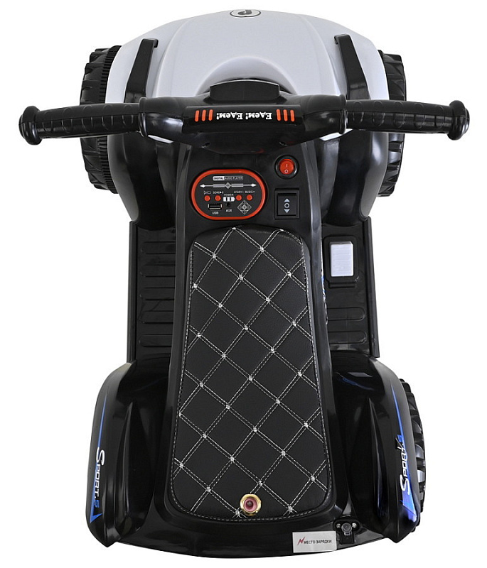 В комплект входят: Аккумулятор: 6V4,5Ah - 1 шт., Мотор: 20W - 1 шт., Колеса: Пластик - 4 шт., Сиденье: Экокожа - 1 шт., Педаль газа на подножке - 1 шт., Зажигание: Кнопка – 1 шт, Корпус: Пластик- 1 шт., Руль: Пластик - 1 шт., Инструкция - 1 шт, Зарядное устройство - 1 шт.