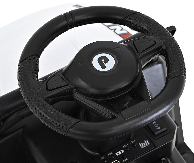 В комплект входят: Аккумулятор: 6V4,5Ah - 1 шт., Мотор: 20W - 1 шт., Колеса: Пластик - 4 шт., Сиденье: Экокожа - 1 шт., Педаль газа на подножке - 1 шт., Зажигание: Кнопка – 1 шт, Корпус: Пластик- 1 шт., Спинка: Пластик – 1 шт., Руль: Пластик - 1 шт., Инструкция - 1 шт, Зарядное устройство - 1 шт.