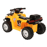 Электроквадроцикл оснащен пластиковыми колесами с резиновыми вставками, световыми и музыкальными эффектами. Игрушка произведена из качественных и безопасных материалов. Игры с электроквадроциклом способствуют развитию опорно-двигательного аппарата у ребенка.