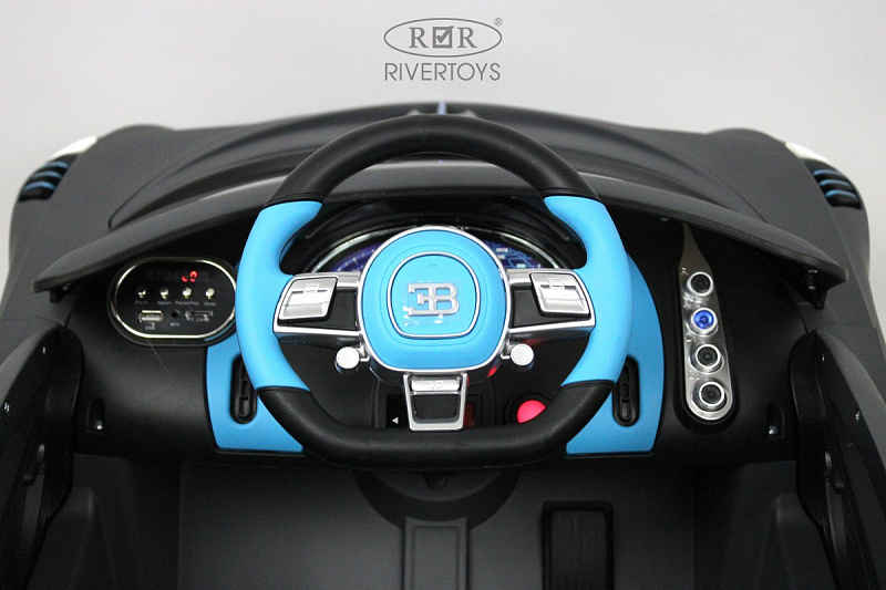 Электромобиль Barty Bugatti Divo HL338 – одноместная машинка, которая изготовлена по лицензии популярного спортивного автомобиля Bugatti. Представленная модель имеет два режима управления: ребенком из салона и родителями с помощью дистанционного пульта. Детская копия машинки в точности повторяет оригинал: фирменные логотипы, решетка радиатора, зеркала, хромированная отделка. Такой электромобиль не останется незамеченным.