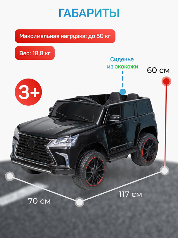 Мягкое одноместное сиденье из качественной экокожи, оборудовано ремнем безопасности. Двери открываются с двух сторон. Колеса из материала EVA не боятся проколов и не нуждаются в подкачке. Электромобиль имеет хорошее сцепление с дорожным покрытием.