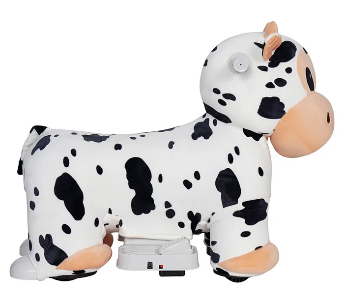 Электромобиль А2114 в виде коровы — уникальная игрушка для развития моторики и координации движений вашего ребёнка. Оснащён аккумулятором 6V4.5 Ah, двигается только вперёд с помощью педали газа, руль поворачивается для изменения направления.