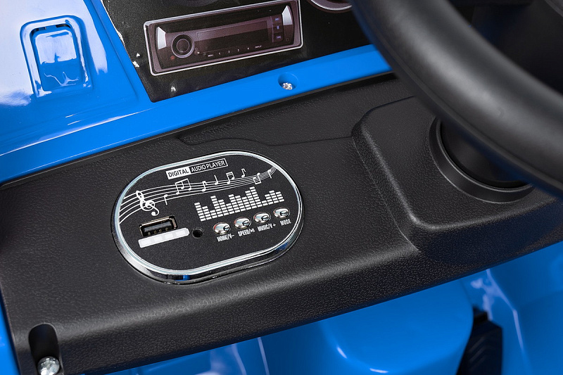 Световые и звуковые эффекты: при запуске двигателя загораются фары, а в музыкальную панель встроены звуки зажигания двигателя, клаксон и музыка. Также есть USB и AUX разъёмы для подключения своей музыки.