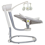 Сиденье Joie Serina Swivel устанавливается как боком, так и спиной к основе, от чего зависит траектория его движения (справа налево, или вперед-назад). Для детишек разного возраста предусмотрено 6 скоростей качания и 2 скорости вибрации (для работы вибромодуля нужна батарейка). Для развлечения малыша, а также для развития его визуальных, тактильных и слуховых способностей, над люлькой крепится вращающаяся дуга с игрушками и есть функция музыкального сопровождения (5 колыбельных мелодий и 5 природных композиций).
