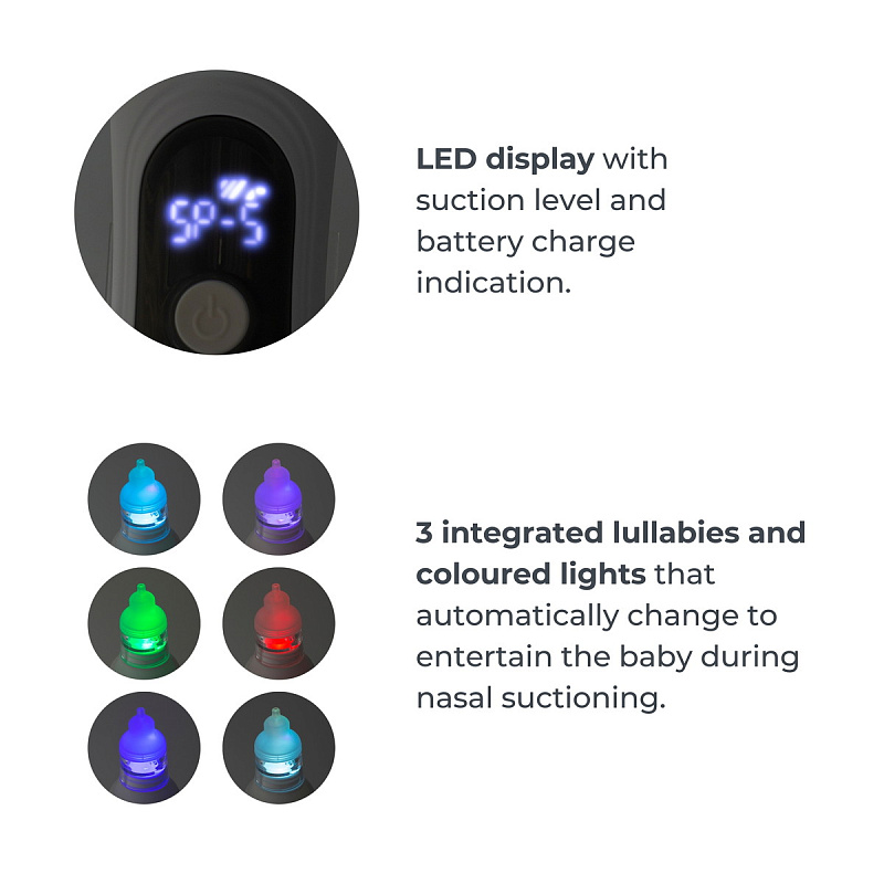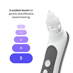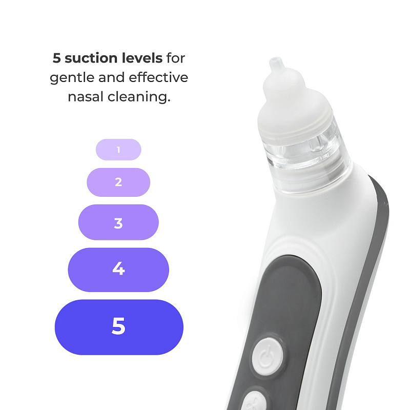 - 5 уровней интенсивности всасывания позволяют избежать раздражения и дискомфорта у ребенка.