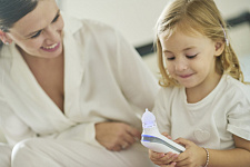 Если ваш ребёнок начинает беспокоиться во время процедуры, вы можете отвлечь его с помощью встроенных расслабляющих колыбельных мелодий и яркой подсветки.