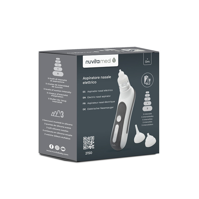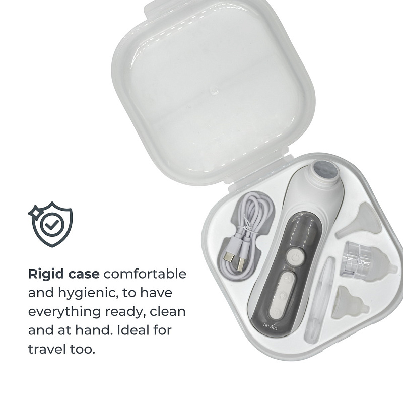 В отличие от обычного ручного назального аспиратора, электрический аспиратор Nuvita бережно и тщательно очищает носовые проходы от слизи. Его быстрый и эффективный результат позволяет быстро облегчить состояние вашего малыша.