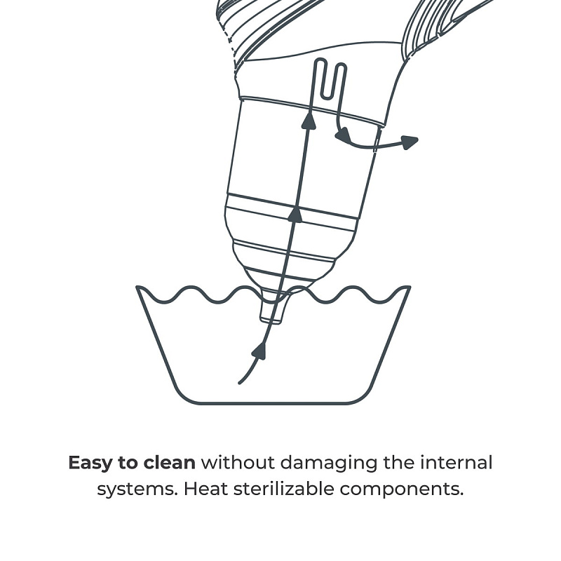 - Насадки можно стерилизовать в кипящей воде или с помощью парового стерилизатора.