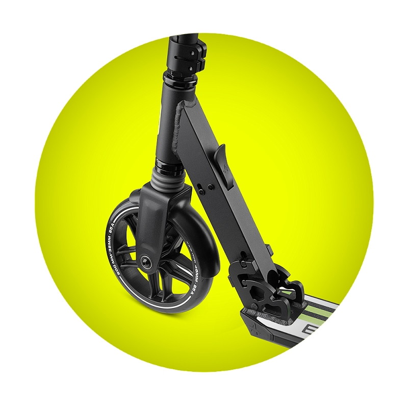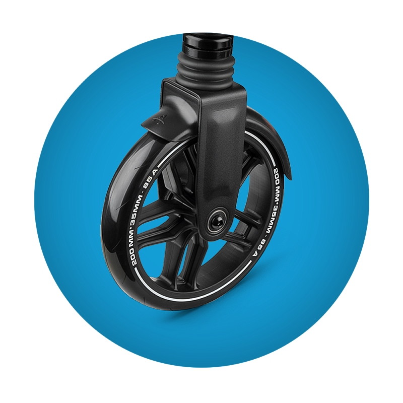 Количество колёс, размеры колес2, диаметр колес - 200 мм, жесткость 85А,ширина колес - 40 мм,материал колес - PP + PU (литой полиуретан) * подшипники - высокоточные (ABEC-9)