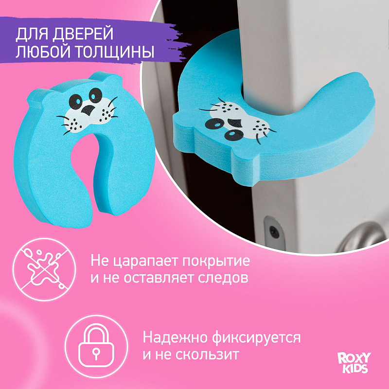 Защитный ограничитель для окон и дверей ROXY-KIDS не позволит створкам захлопнуться и прищемить пальчики малыша, сделает безопасным процесс открывания и закрывания. Легко устанавливается на любые типы межкомнатных дверей без дополнительных крепежей, не царапает покрытие, не оставляет следов при снимании. Крепится на боковую поверхность двери, на высоте, недоступной ребенку. Помимо основной функции, удобно использовать в доме с питомцами, для которых двери должны быть всегда открыты.